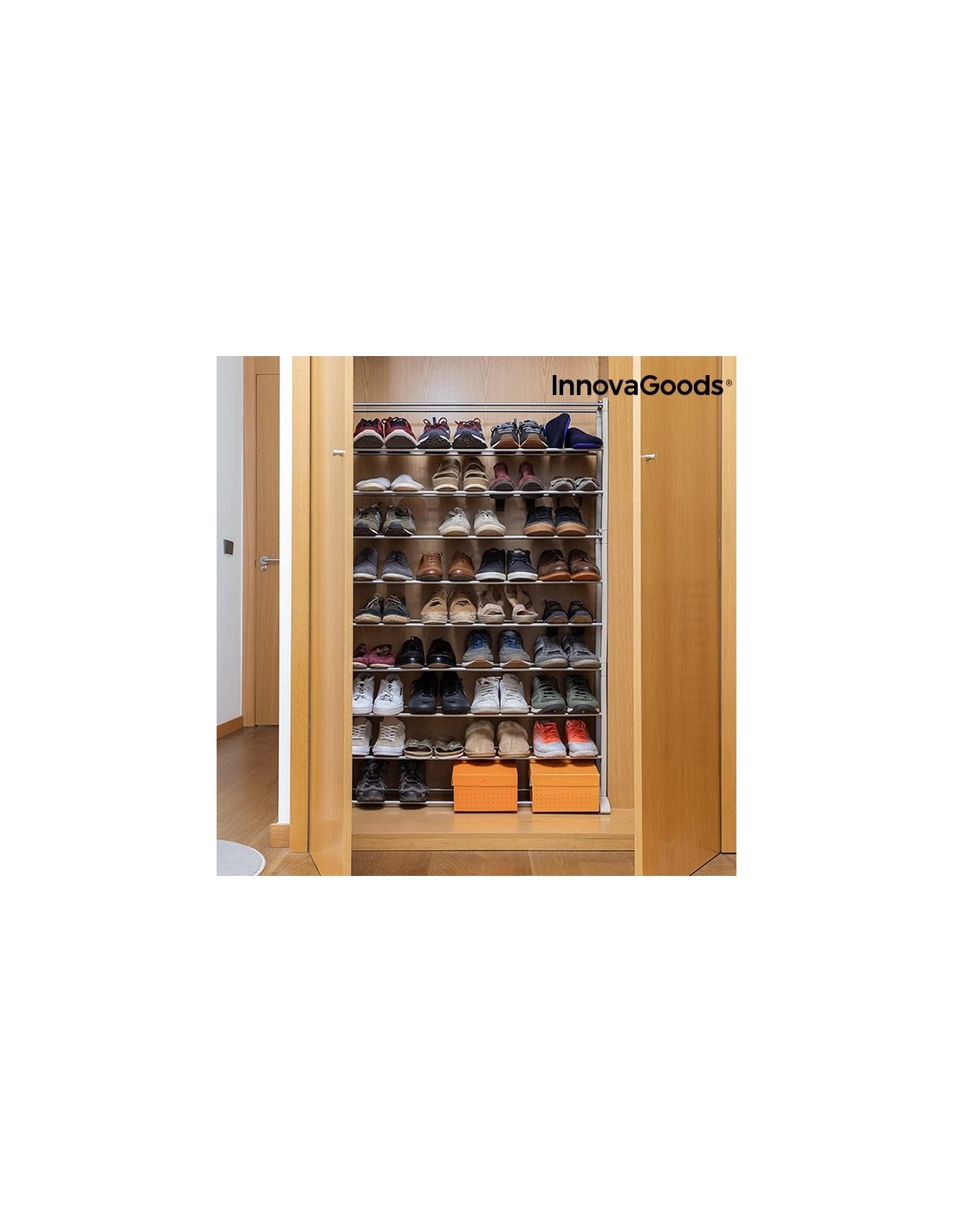 Sapateira para organizar até 45 pares de sapatos (dependendo do peso).