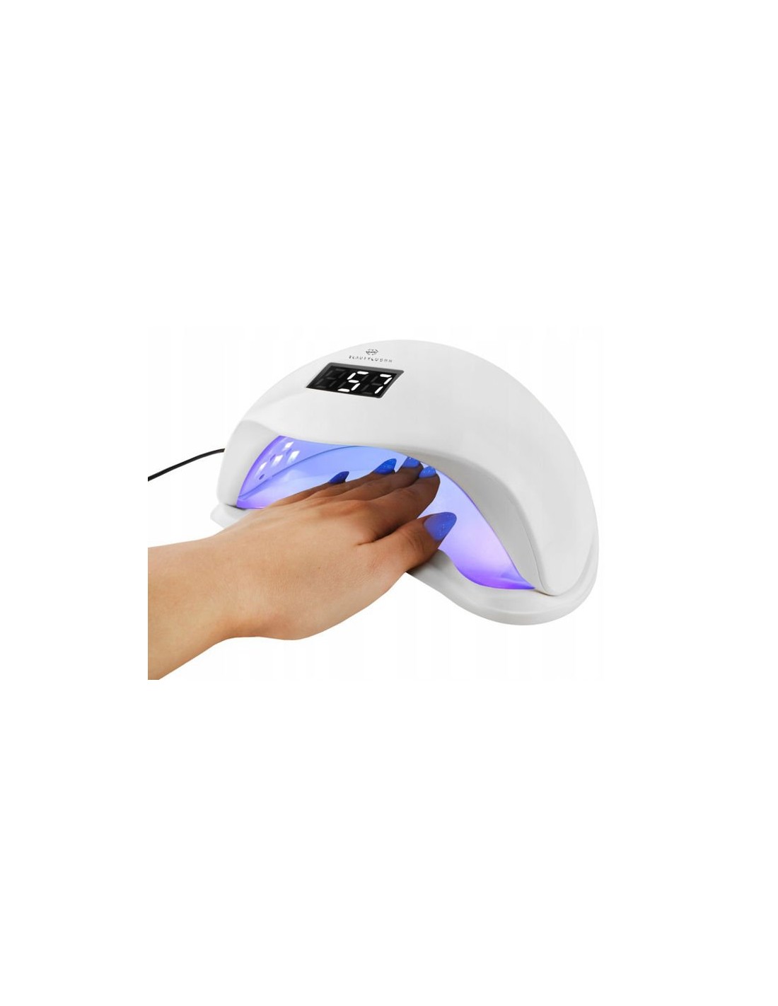 TECNOLOGIA DUAL LED - 48W de potência e 24 LEDs potentes garantem cura rápida e uniforme! Além disso, a lâmpada possui uma faixa de onda dupla de 365nm e 405nm. O uso de tal solução significa que toda a mão está perfeitamente iluminada, e o mais importante? Não temos que nos preocupar com o polegar, muitas lâmpadas não suportam acendê-lo e é necessário levantá-lo, o que é desconfortável. O NOSSO MODELO garante iluminação total sem levantamento. A mão pode descansar facilmente na base.
