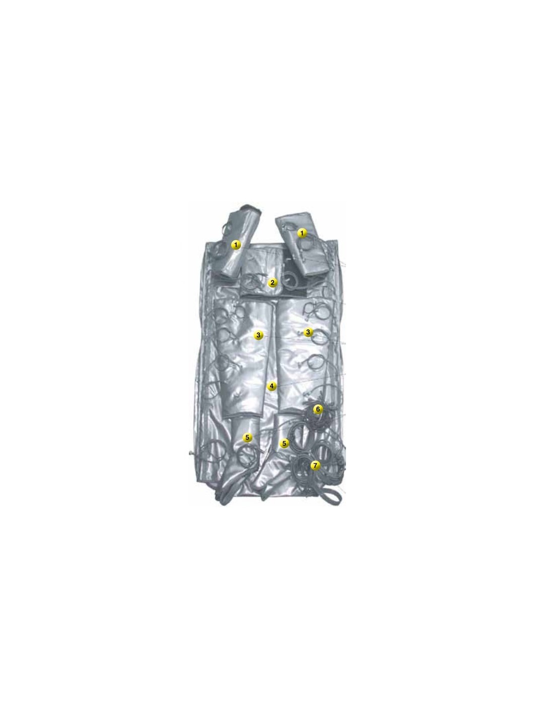 - 1 bolsa protetora e organizadora de mangueiras com práticos bolinhos laterais para a marquesa. Isto preserva a harmonia visual da clínica.